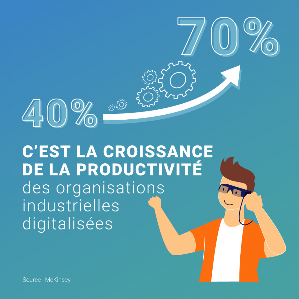 Selon une enquête conduite par VDC Research en 2020, 48 % des entreprises industrielles veulent ajuster leurs opérations en déployant des fonctionnalités et dispositifs IoT à un horizon de 3 ans. 30 % d'entre elles auraient déjà des projets en cours en la matière. L'évolution accélérée vers l'intégration de solutions technologiques intelligentes promet des retombées importantes et des champs d'application très variés, ce qui explique cet engouement. Une organisation industrielle digitalisée et connectée mène à une augmentation de la productivité qui va de 40 à 70 % selon les contextes, souligne une étude du cabinet McKinsey.